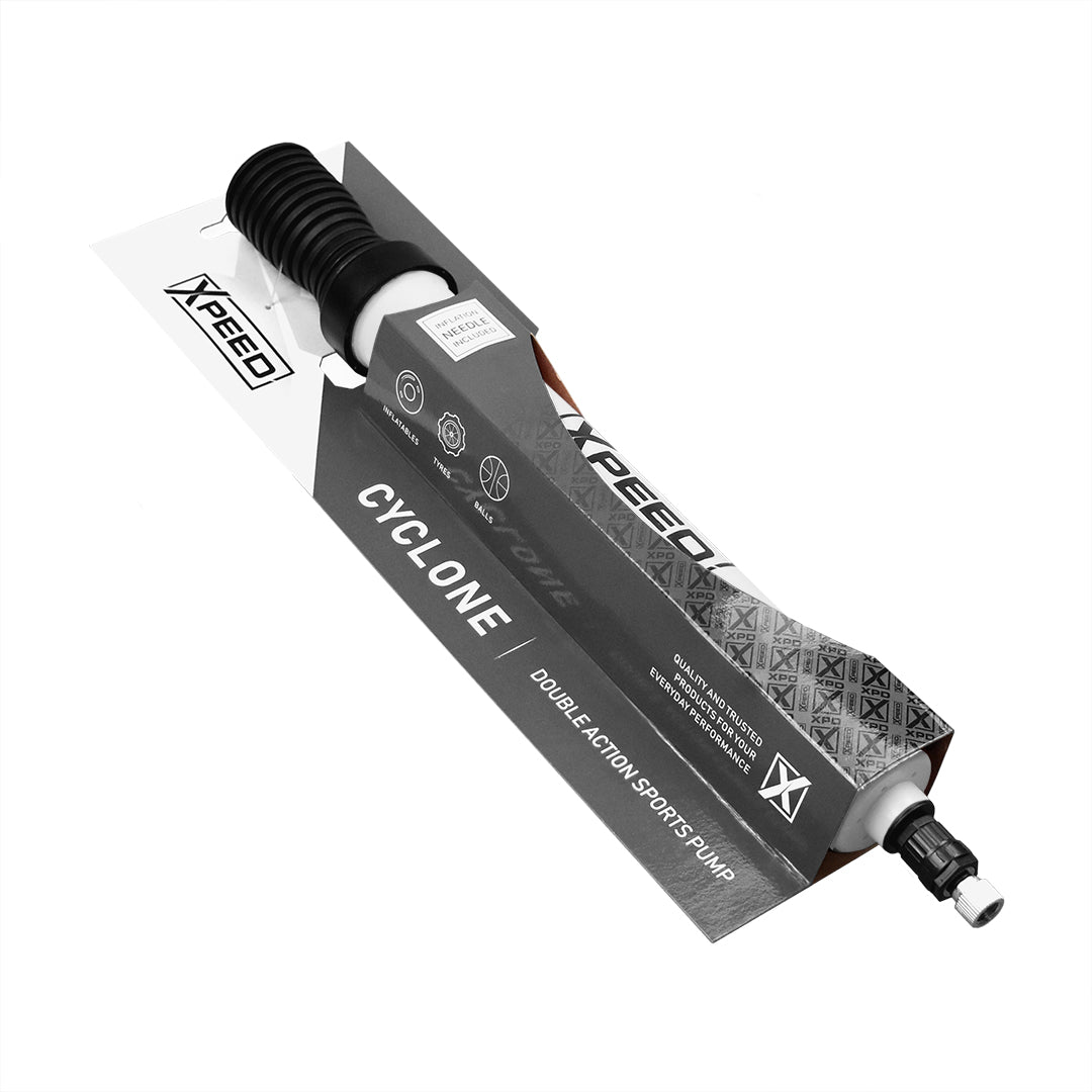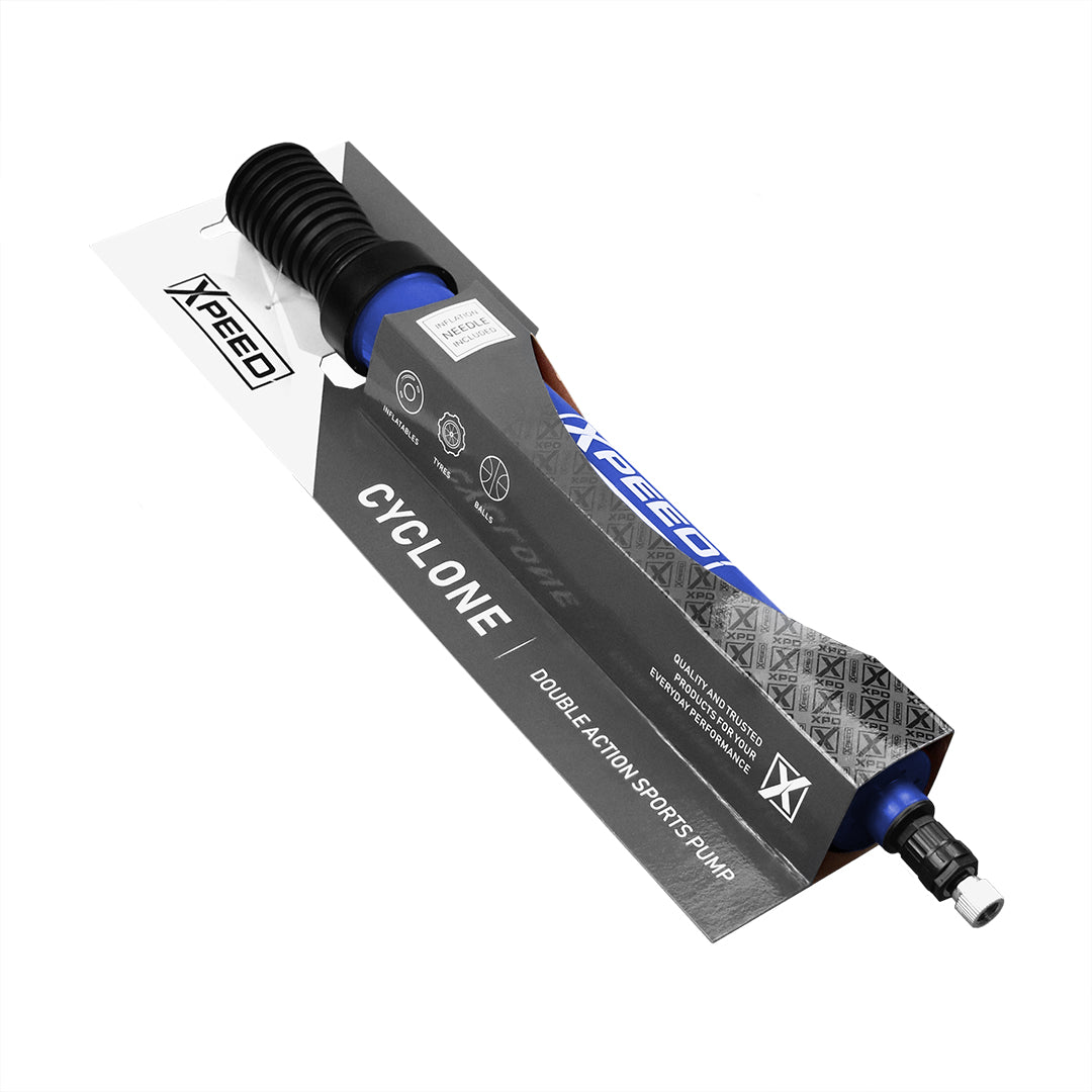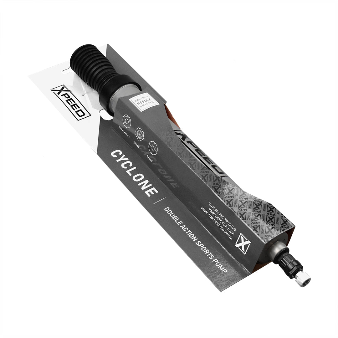 Get game-ready quicker with the Xpeed Cyclone Double Action Pump. Efficient, compact and easy to use. Whether you're inflating footy balls, netballs or bike tyres, this versatile tool delivers strong airflow on both the push and pull.